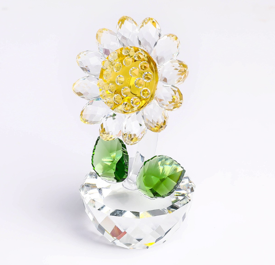水晶向日葵玻璃花朵装饰工艺品办公桌电脑摆件